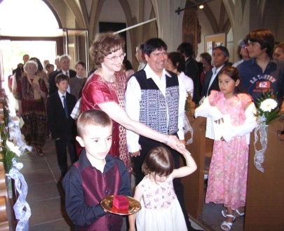 Schweinfurt. Am 10. Juni 2006, einem Samstag, zeigten Schweinfurts Thermometer brasilianische Temperaturen an. Einen idealeren Hochzeitstermin konnte es daher eigentlich gar nicht geben. Christhild Grafe, rund 12 Jahre Zweite Pfarrerin an St. Johannis, gab ihrem Juan Osorio das Ja-Wort. Sie, in Indien geboren, evangelisch - er aus Peru stammend, katholisch: Allein schon diese Konstellation ließ einen multikulturellen Gottesdienst und anschließend ein farbenprächtiges Fest mit kulinarischen Schmankerln auf dem Martin-Luther-Platz erwarten, an dem natürlich unsere Brasilien-Repräsentanten aus Rio de Janeiro (s.u. 7.) teilnahmen. Aber auch aus Österreich, England, den USA und sogar aus Brunei (Sultanat im Norden Borneos!) waren Gäste zu diesem außergewöhnlichen Event angereist.
