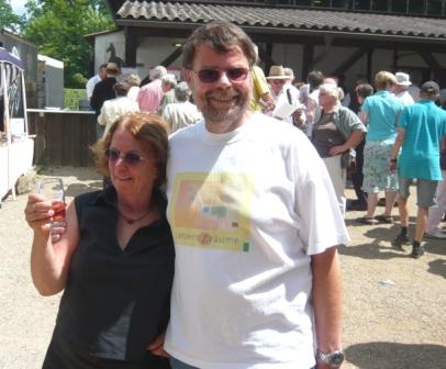 Schweinfurter mit geschenktem Weinglas: Ehepaar Maurischat | Trotz Sonnenbrille erkennbar: Gemeindeglieder aus Oberndorf |