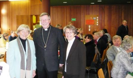 Der Regionalbischof: standfest bei seiner Predigt über den sinkenden Petrus | Für die Frauenbundchronik: Abschiedsfoto mit dem Regionalbischof -Heike Gröner (l.) und ihre Stellvertreterin Ilse Heusinger |