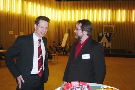 Gastgeber Norbert Holzheid rief - aber nicht alle folgten dem Ruf | Zweisamkeit an einer Tischfront:  Pfr. Jochen Keßler-Rosa (l.) und Dekan Oliver Bruckmann |