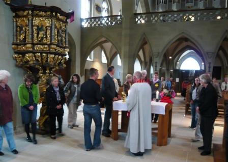 Auffallend viele junge Familien, Kinder und Jugendliche besuchten den Gottesdienst. Alle – ob jung, ob alt – empfingen denn auch gemeinsam das Hl. Abendmahl. Eine freundliche, helle Kirche bringt eben – wie mehrfach betont wurde – auch eine lebendige, „osterfreudige“ Gemeinde hervor. Um ihre Zukunft muss man sich gewiss nicht sorgen. "Jesus lives in my house", sang zu Recht der Jugendchor.