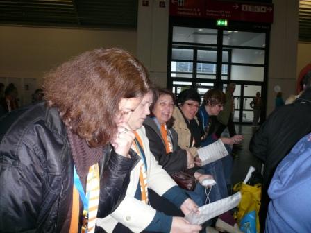 | München-Hauptbahnhof: angekommen (l., Pfrin. Christhild Grafe) | Angekommen im Gemeinschaftsquartier |
