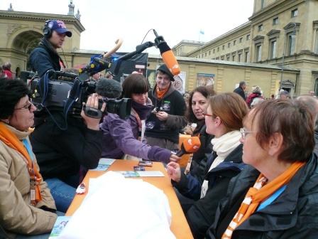 | Odenonsplatz: das ZDF interviewt Pfrin. Tabea Richter | Odeonsplatz: Orthodoxe Vesper mit Brotbrechen |