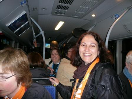 | Aufbruch zum Schlussgottesdienst | Im Shuttlebus zur Theresienwiese |