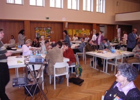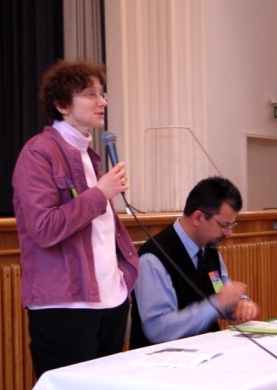 | Referentin Ingrit Vogt; daneben Moderator des Treffens Pfr. Hans Zeller/Schwaig | Â Â Â Â Â Â Â Â Â Â Â Â Â Â Â Â Â Â Â Â Â Â Â Â Kreative Teilnehmerinnen und Teilnehmer |