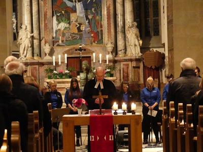 Musikalisch hervorragend umrahmt wurde der Festgottesdienst von Kirchenmusikdirektor Jörg Wöltche mit dem Gospelchor PraiSing aus Bad Kissingen. Die jungen Musikerinnen und Musiker begeisterten die Gemeinde mit ihren mitreißenden und perfekt inszenierten Songs und brachten selbst die zurückhaltendsten Gottesdienstbesucher dazu, mitzuklatschen. Der große Applaus am Ende war hoch verdient.