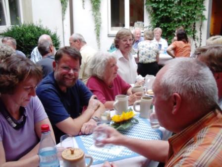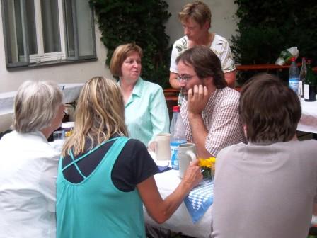 Wie wenn man sich schon viele Jahre lang kennen würde, saß man buntgemischt zusammen, grillte, aß, lachte und unterhielt sich. Es war zu spüren: das gemeinsame KV- Kennenlern-Wochenende im Frühjahr wirkte nach. Selbst der Sommerhimmel meinte es gut und überspannte das harmonische Miteinander im wunderschönen Innenhof des Pfarrhauses St. Salvator.