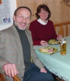 So kennen wir Pfarrer Kern: dienstlich |  und gesellig (hier mit Pfarrerin Müller) (Fotos: Bergler) |
