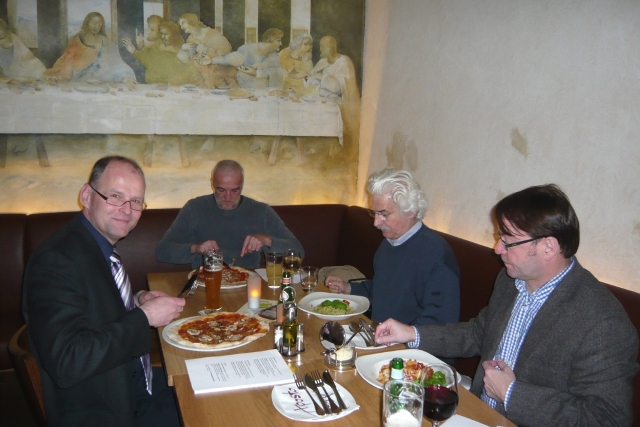 Schweinfurt, 31.1.2011. Alle Jahre wieder (s. Archiv 2010/I, Nr. 10) lädt Dekan Oliver Bruckmann Pressevertreter aus Schweinfurt zu einem Arbeitsessen mit Informationen über anstehende Probleme und Planungen im Dekanat ein. Der Einladung folgten diesmal der Chefredakteur des „Schweinfurter Tagblatts“ Karl-Heinz Körblein und die Journalisten Hannes Helferich und Claus Peter Gras.