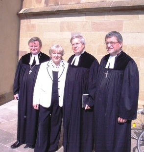 Nach dem Gottesdienst (v.l.): Regionalbischof Völkel, Ehepaar Luithardt, Dekan Dr. Breitenbach |